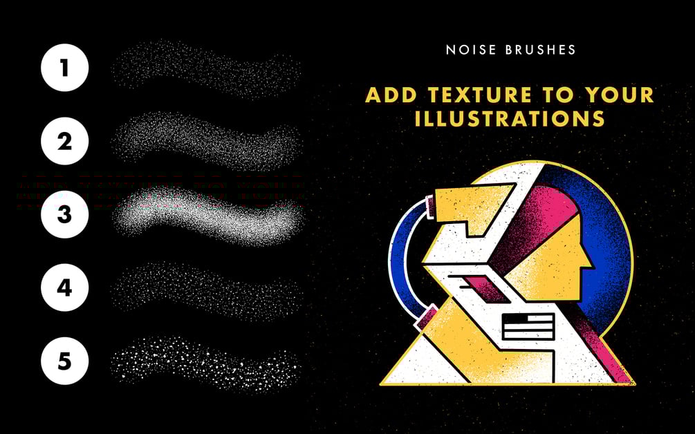 Exclusive collection of GRAIN AND NOISE textured brush pack which comes with: